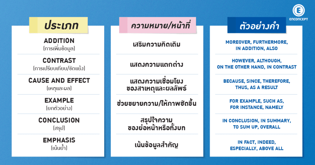 ประเภทของ Signal Words ที่พบบ่อยในข้อสอบ A Level อังกฤษ พาร์ต Unseen